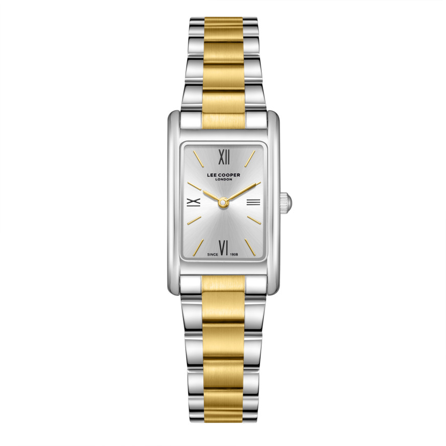 Класически модел дамски часовник Lee Cooper от колекцията Elegance. Правоъгълен корпус изработен от супер метал (специална сплав, създадена от Lee Cooper). Верижка от неръждаема стомана. Аналогов дисплей в сребрист цвят. Стъкло минерал-кристал. Часовникът се задвижва от кварцов механизъм. Водоустойчивост 3 ATM - допускат се леки пръски, не се препоръчва обилно мокрене.