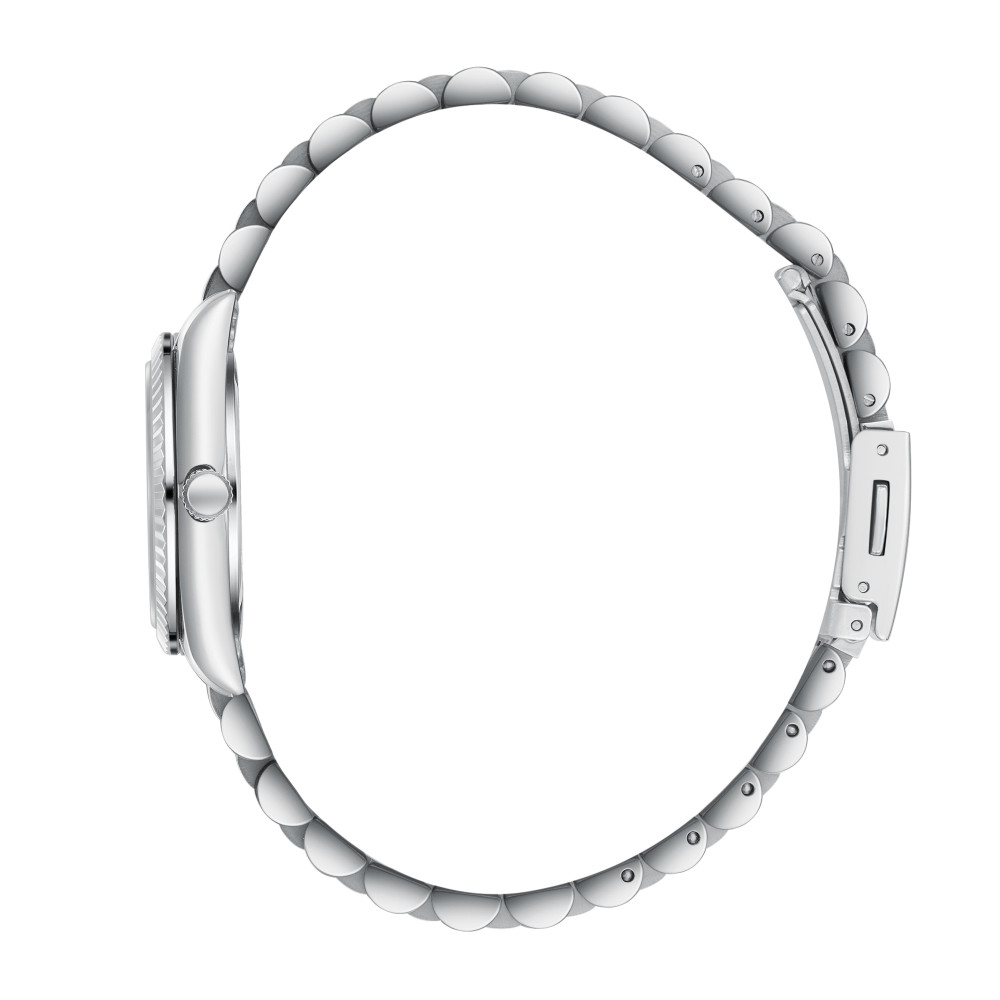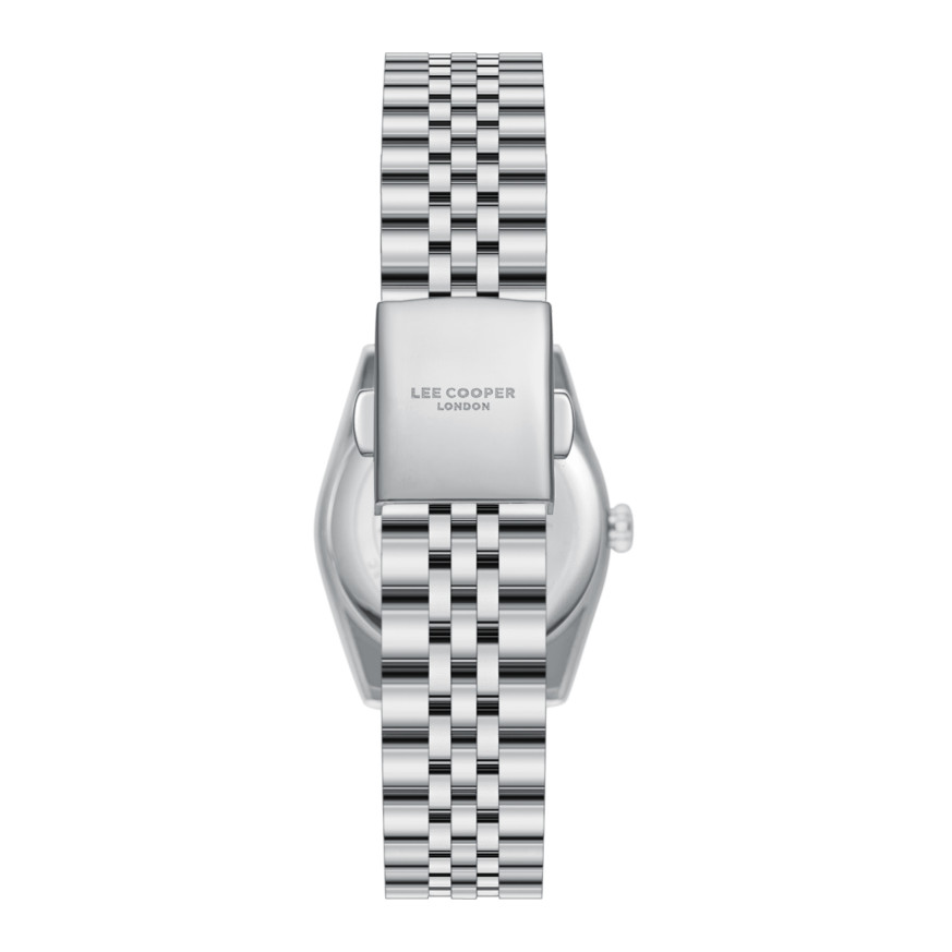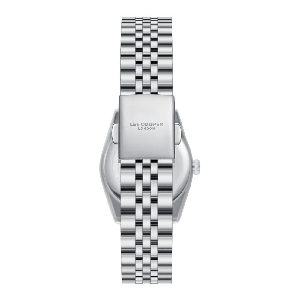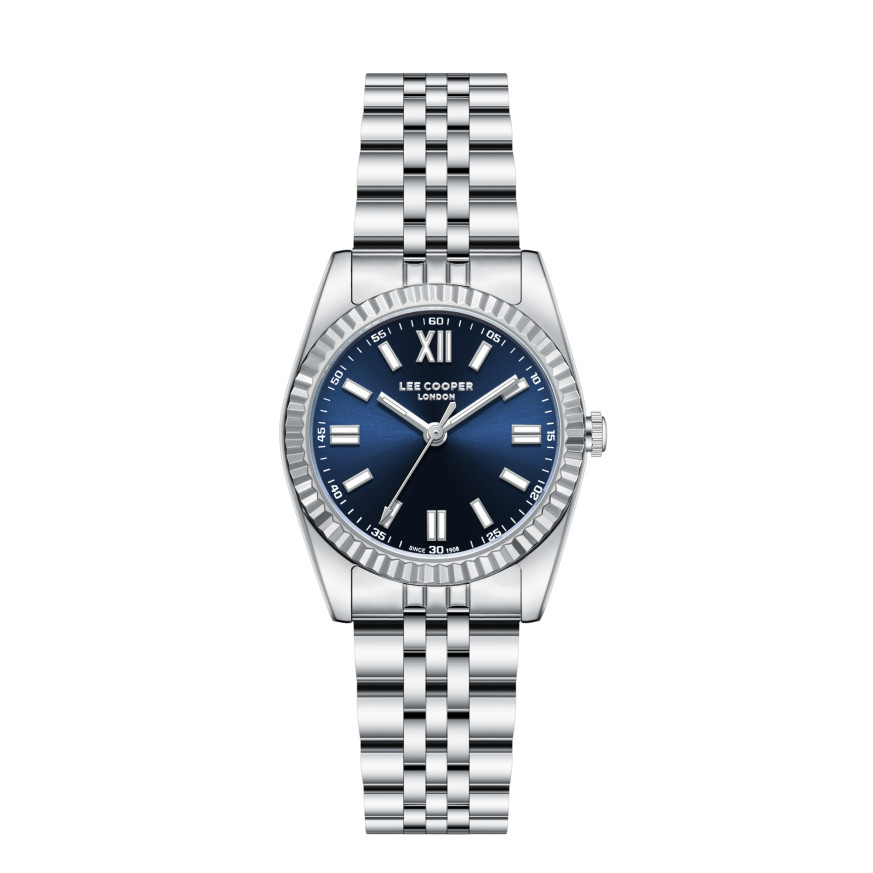 Класически модел дамски часовник Lee Cooper от колекцията Elegance. Корпус изработен от супер метал (специална сплав, създадена от Lee Cooper). Верижка от неръждаема стомана. Аналогов дисплей в тъмносин цвят. Диаметър на корпуса 30 мм. Стъкло минерал-кристал. Часовникът се задвижва от кварцов механизъм. Водоустойчивост 3 ATM - допускат се леки пръски, не се препоръчва обилно мокрене.