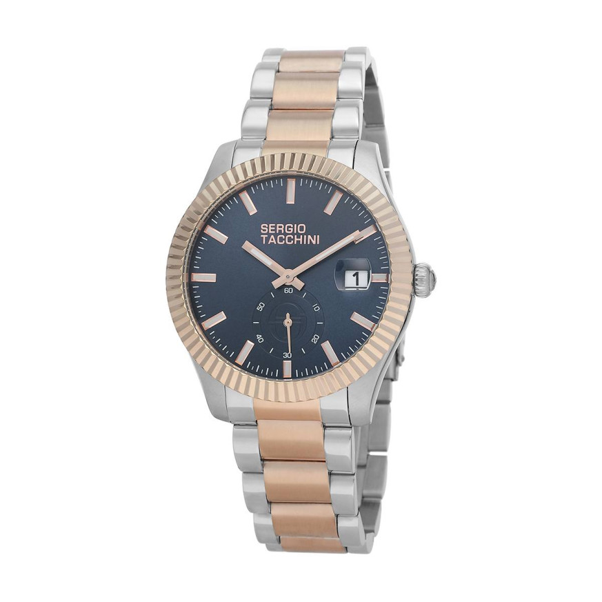 Класически модел мъжки часовник Sergio Tacchini от колекцията Coastlife. Корпус и верижка от неръждаема стомана. Тъмносин аналогов дисплей с отделен секундарник и показател за дата. Стъкло минерал-кристал. Задвижва се от кварцов механизъм. Водоустойчивост 5 ATM - допускат се леки пръски и взимане на душ, не се препоръчва обилно мокрене.