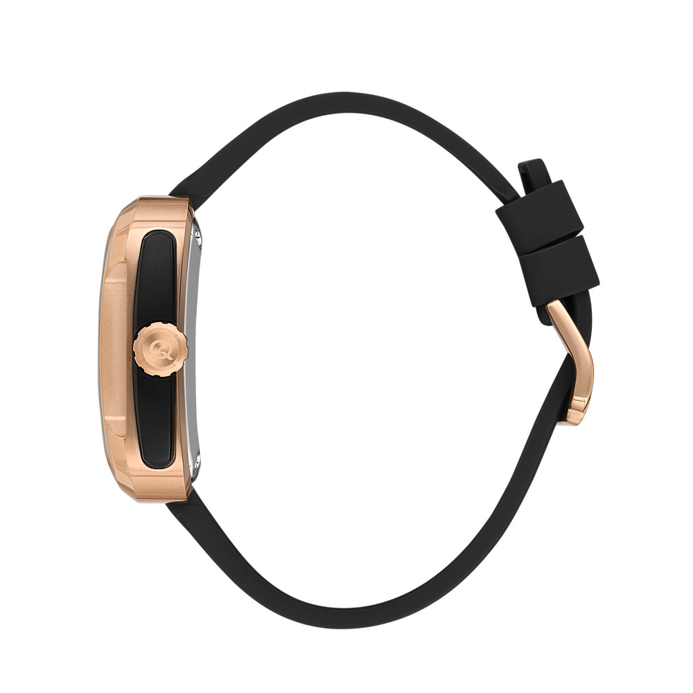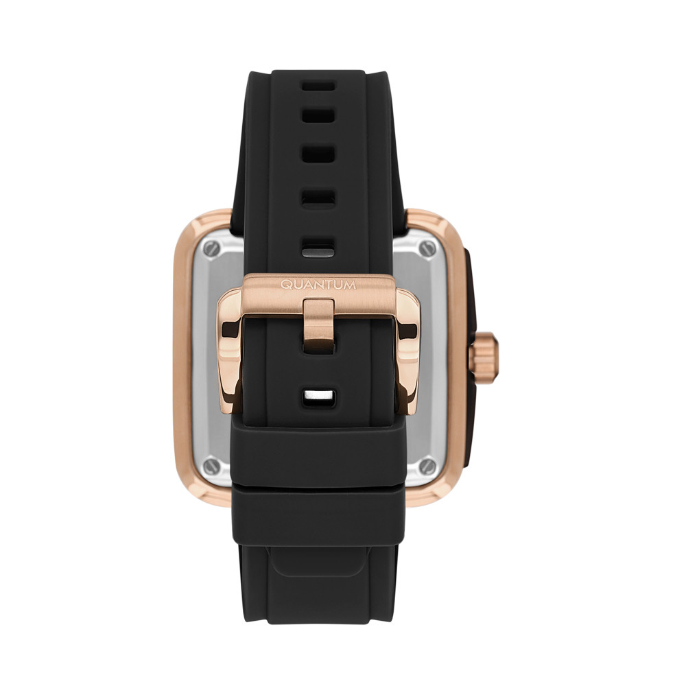 Мъжки часовник Quantum със спортно-елегантен дизайн от колекцията Q-Master. Аналогов дисплей с видим баланс, 24-часов формат и отделен секундарник. Стъкло минерал-кристал . Корпус изработен от неръждаема стомана. Черна силиконова каишка. Часовникът се задвижва от автоматичен механизъм  с 21 камъка. Водоустойчивост 5 ATM - допускат се леки пръски и взимане на душ, не се препоръчва обилно мокрене.
