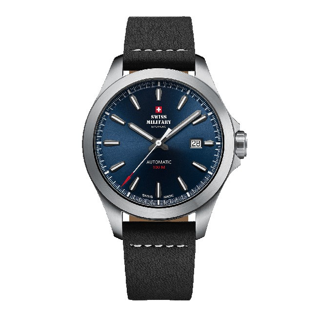 Часовник Swiss Military By Chrono SMA34077.08 е елегантен мъжки автоматичен модел, съчетаващ класическа визия и прецизна швейцарска изработка. Синият циферблат с фини индексни маркери и открит механизъм придава изискано излъчване, а корпусът от благородна стомана осигурява здравина и устойчивост. Каишката от естествена кожа допринася за комфорт и стил при ежедневно носене. Минералното стъкло със сапфирено покритие предпазва от надрасквания, а водоустойчивостта до 10 ATM гарантира надеждност при активен начин на живот.