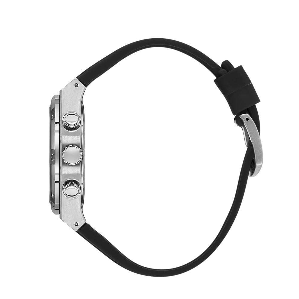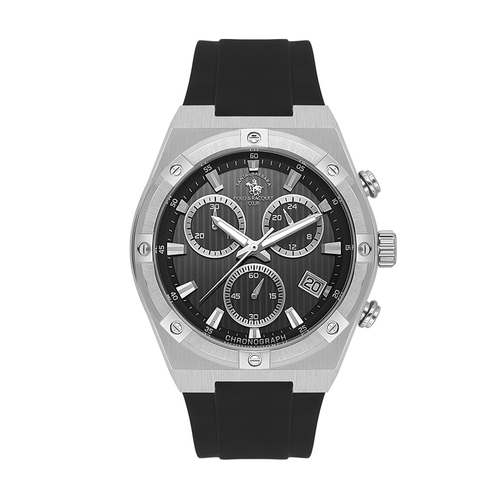 Мъжки часовник с модерен спортен дизайн от колекцията Legend. Корпус от неръждаема стомана в комбинация със силиконова каишка. Дисплей хронограф в цвят черен със сребристи детайли и луминисцентно покритие върху стрелките и индексите. Диаметър на корпуса 44 мм. Стъкло минерал-кристал. Задвижва се от кварцов механизъм VR34B14. Водоустойчивост 5 ATM - допускат се леки пръски и взимане на душ, не се препоръчва обилно мокрене.