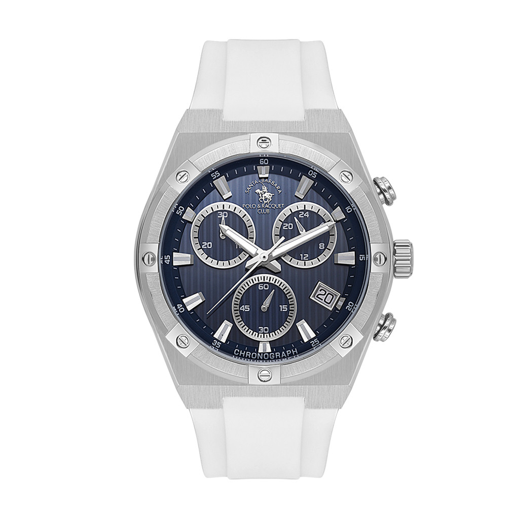 Мъжки часовник с модерен спортен дизайн от колекцията Legend. Корпус от неръждаема стомана в комбинация със силиконова каишка. Дисплей хронограф в тъмносин цвят със сребристи детайли и луминисцентно покритие върху стрелките и индексите. Диаметър на корпуса 44 мм. Стъкло минерал-кристал. Задвижва се от кварцов механизъм VR34B14. Водоустойчивост 5 ATM - допускат се леки пръски и взимане на душ, не се препоръчва обилно мокрене.
