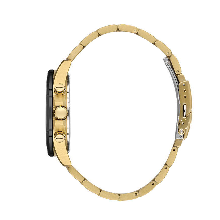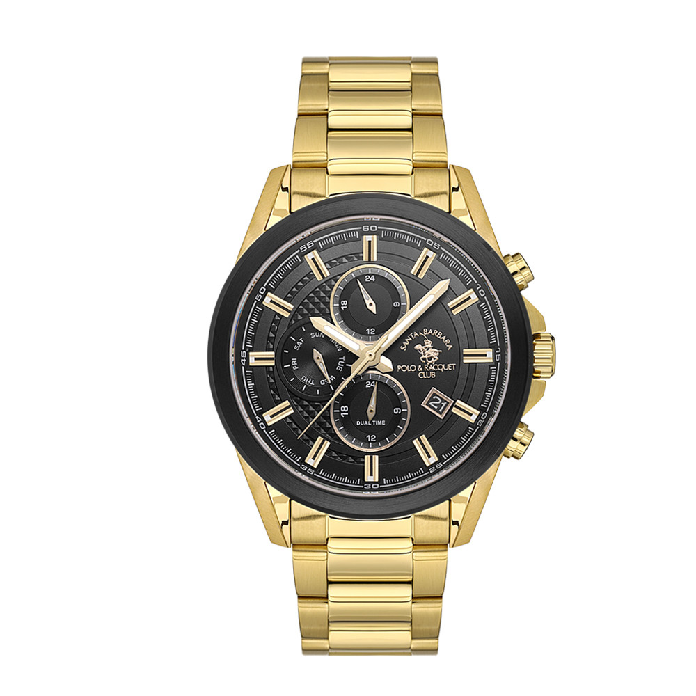 Спортно-елегантен модел мъжки часовник от колекцията Legend. Корпус и верижка изработени от неръждаема стомана. Мултифункционален дисплей в черен цвят със златисти детайли. Стъкло минерал-кристал. Диаметър на корпуса 44.5 мм. Задвижва се от кварцов механизъм. Водоустойчивост 5 ATM - допускат се леки пръски и взимане на душ, не се препоръчва обилно мокрене.