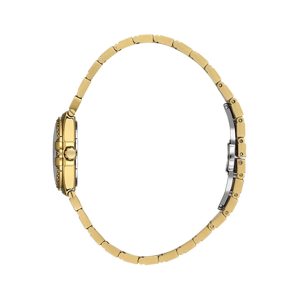 Дамски часовник с елегантна визия от колекцията Unique. Корпус и верижка изработени от неръждаема стомана. Моделът е с аналогов дисплей с показател за дата и декорация от нежни кристали по индексите и безела. Стъклото е минерал-кристал. Диаметър на корпуса 26 мм. Часовникът се задвижва от кварцов механизъм. Водоустойчивост 5 ATM - допускат се леки пръски и взимане на душ, не се препоръчва обилно мокрене.