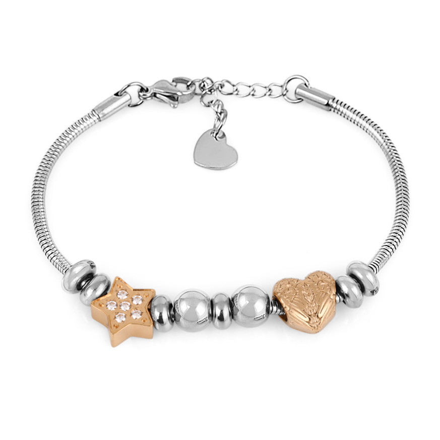 Интересна дамска гривна Daniel Klein от неръждаема стомана, с декорация от множество обемни елементи, един от които е с инкрустирани кристали.