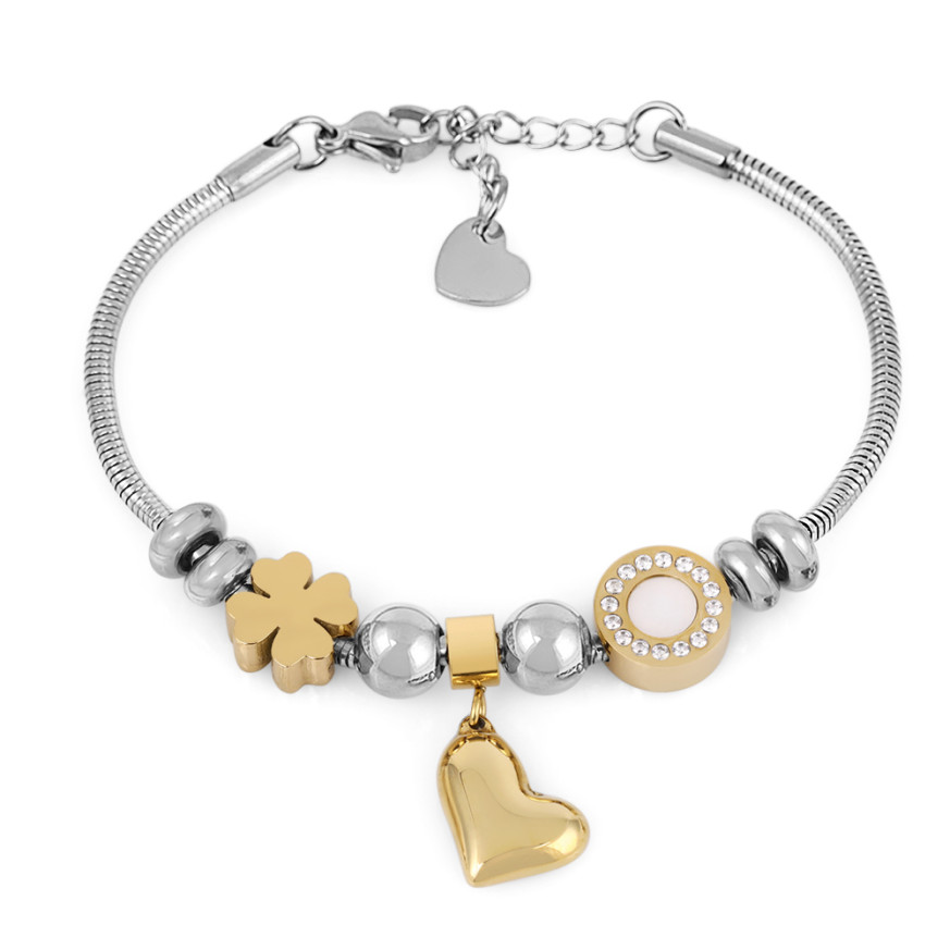 Интересна дамска гривна Daniel Klein от неръждаема стомана, с декорация от множество обемни елементи, един от които е с инкрустирани кристали.