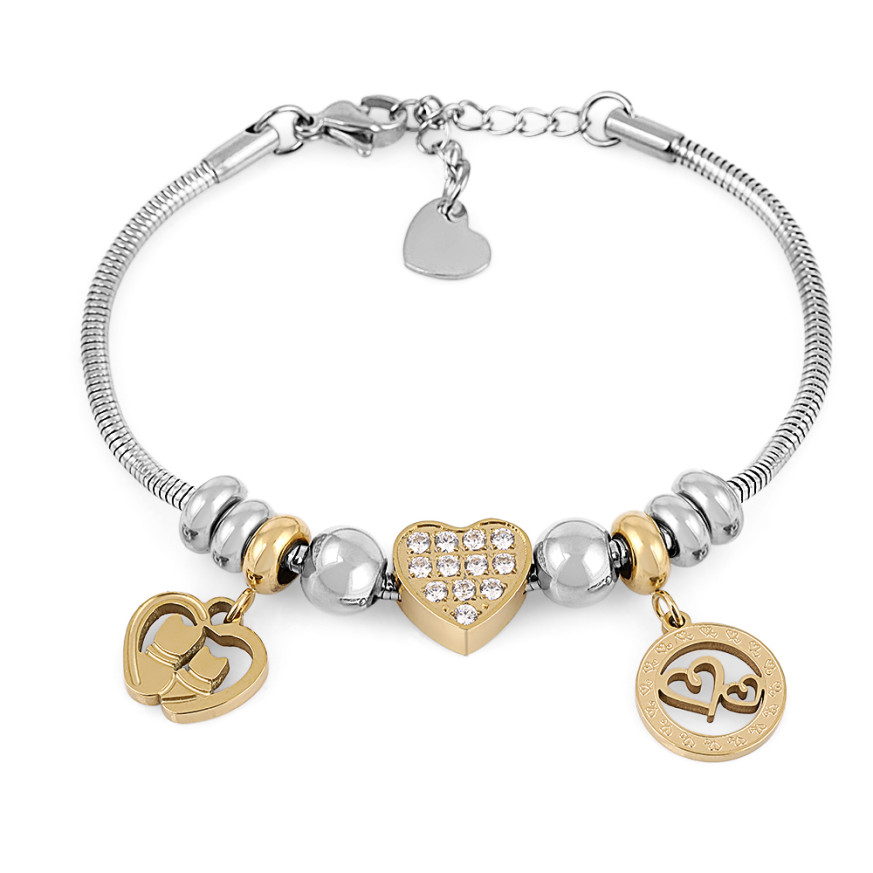 Интересна дамска гривна Daniel Klein от неръждаема стомана с декоративни елементи и висулки, инкрустация от бляскави кристали.