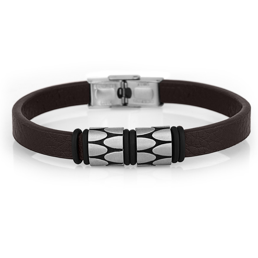 Модерна мъжка гривна Daniel Klein, изработена от естествена кожа със закопчалка и елементи от неръждаема стомана.