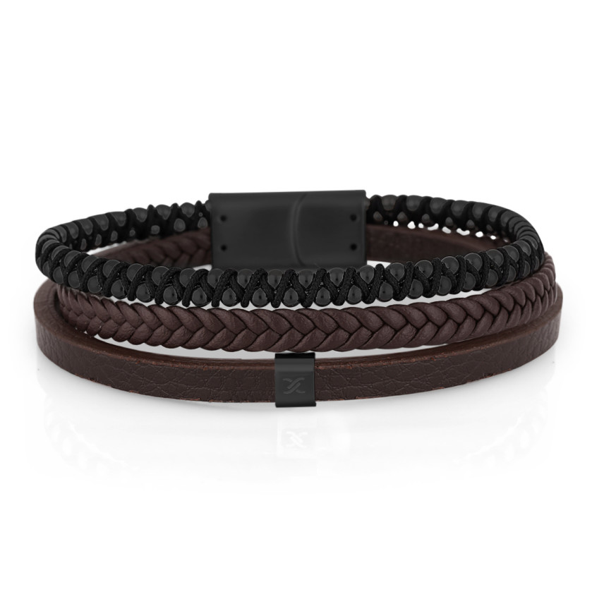 Впечатляваща мъжка гривна Daniel Klein от естествена кожа, неръждаема стомана и текстил в кафяв и черен цвят.