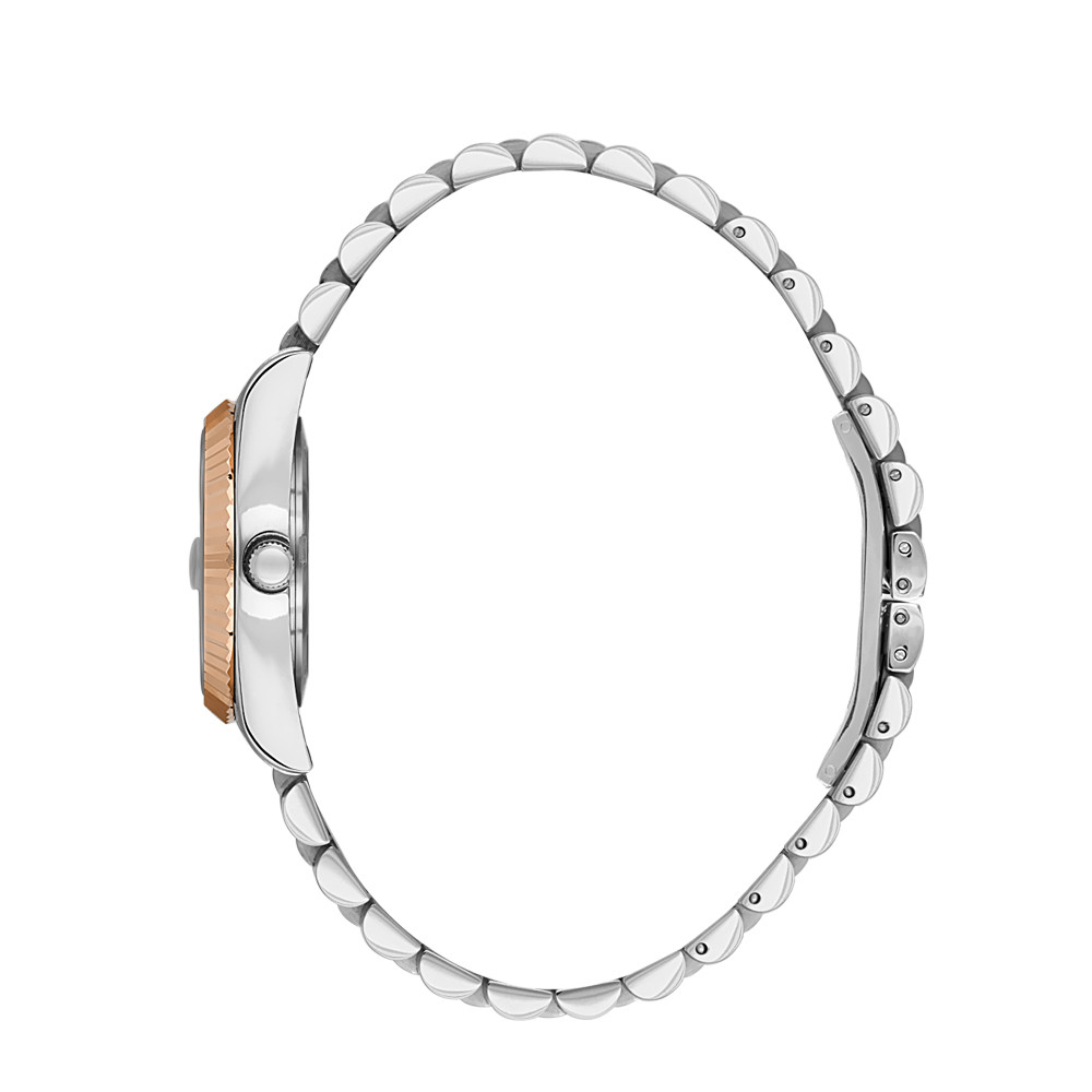 Дамски часовник с класическа визия от колекцията Unique. Корпус и верижка изработени от неръждаема стомана. Аналогов дисплей в сребрист цвят с показател за дата и декорация от нежни кристали по часовите маркери. Стъкло минерал-кристал. Диаметър на корпуса 31 мм. Часовникът се задвижва от кварцов механизъм. Водоустойчивост 3 ATM - допускат се леки пръски, не се препоръчва обилно мокрене.