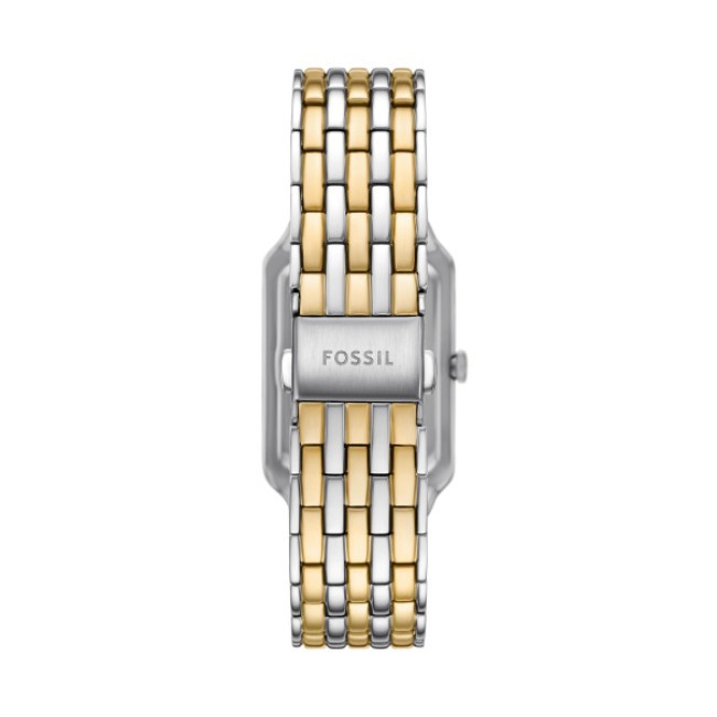 Fossil ES5399 от колекция Raquel е дамски кварцов часовник, който се отличава с изтънчен и модерен дизайн. Перленият правоъгълен циферблат с north-south ориентация придава уникално и елегантно излъчване, допълнено от сребрист корпус от благородна стомана. Двуцветната верижка добавя стилен контраст и универсалност, подходяща както за ежедневие, така и за специални поводи. Минералното стъкло осигурява защита от надраскване, а компактният размер гарантира комфорт при носене.
