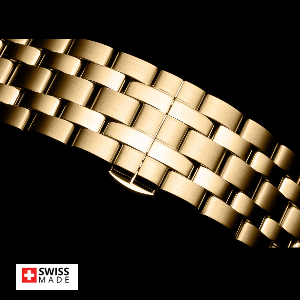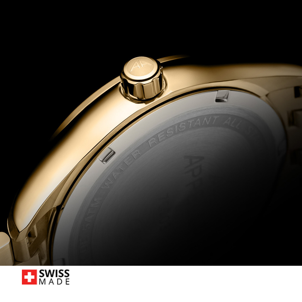 Мъжки часовник Appella L70003.1113QF с корпус и верижка от неръждаема стомана. Сребрист мултифункционален дисплей със златисти детайли. Стъкло сапфир-кристал. Задвижва се от кварцов механизъм RONDA X30 Swiss Made. Диаметър на корпуса 43 мм. Водоустойчивост 5 ATM - допускат се леки пръски и взимане на душ, не се препоръчва обилно мокрене.