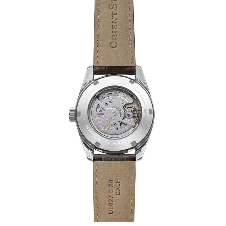 Orient Star RE-AU0113Y от колекция Contemporary е мъжки автоматичен часовник, създаден за ценители на механичното часовникарство. Моделът е оборудван с in-house механизъм Cal.F6N43, който предлага 50 часа резерв на мощност и висока точност. Индикаторът за power reserve добавя практичност и подчертава инженерната стойност на часовника. Циферблатът в кафяв нюанс с текстурирана повърхност придава дълбочина и характер, а прозрачният гръб разкрива работата на механизма. Сапфир-кристалът с антирефлексно покритие и водоустойчивостта от 10 ATM правят модела подходящ както за ежедневие, така и за активен начин на живот.