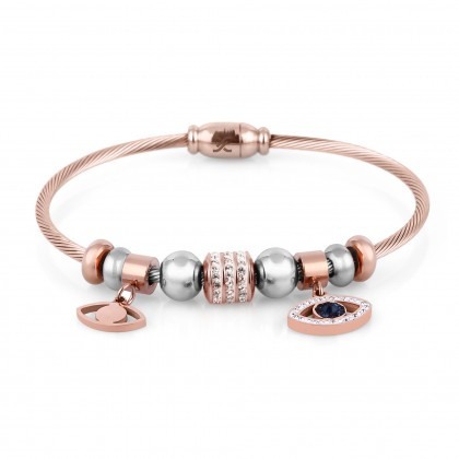 Дамска гривна Daniel Klein със стилни детайли и висулки стилизирано око, допълнени от кристали. Изработена от неръждаема стомана.