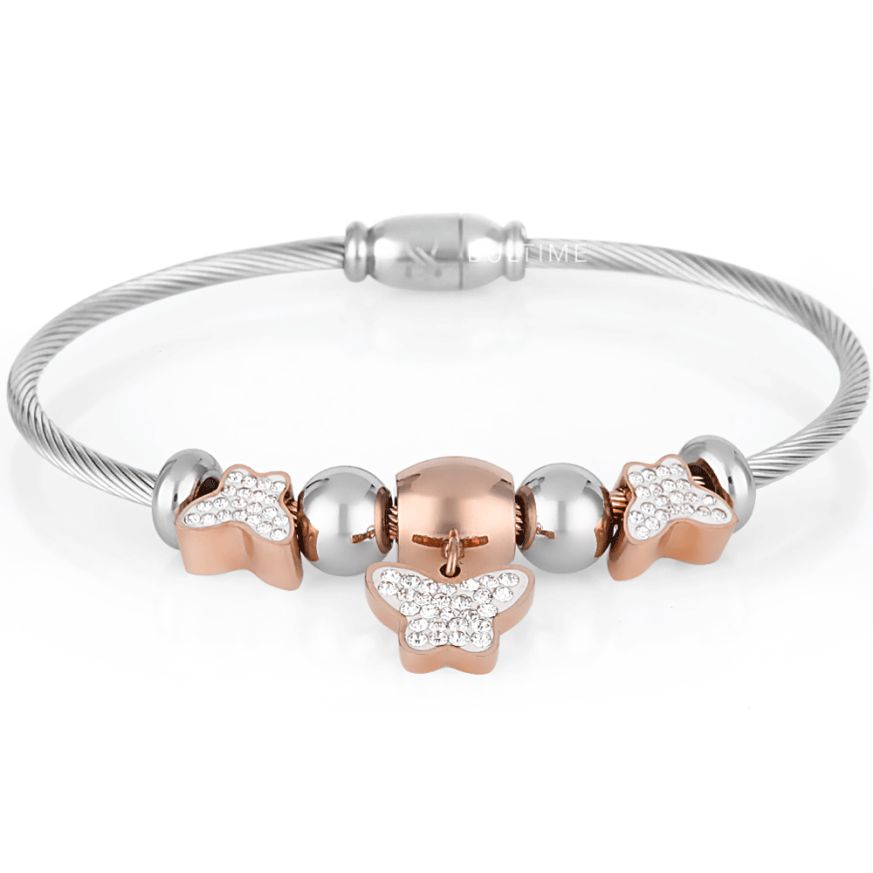 Моделът е акцентиран от детайли във формата на пеперуди в цвят розово злато, допълнени от