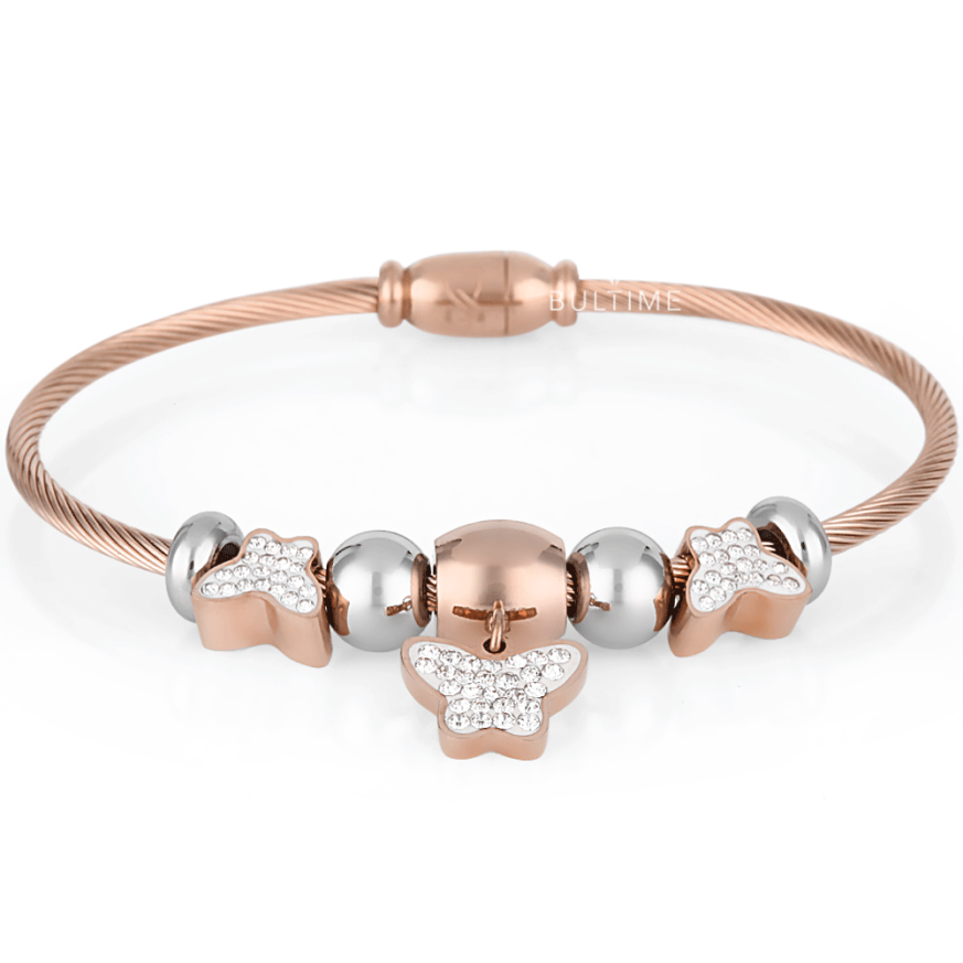 Моделът е акцентиран от детайли във формата на пеперуди, допълнени от