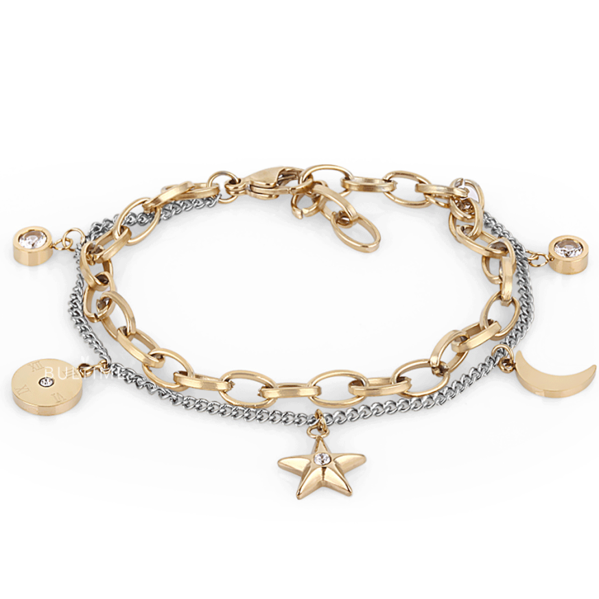 Гривна Daniel Klein изработена от неръждаема стомана. Атрактивни висулки в златист цвят, допълнени от нежни кристали. Регулируем модел.