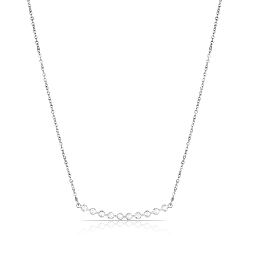 Елегантно дамско колие Daniel Klein изработено от неръждаема стомана в сребрист цвят. Моделът е с декоративен елемент с инкрустирани кристали.