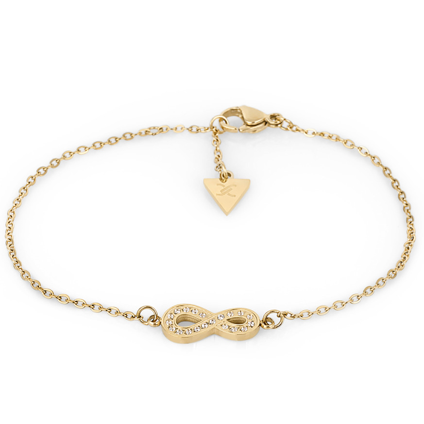 Дамска гривна Daniel Klein изработена от неръждаема стомана. Нежнен елемент безкрайност, допълнен от бляскави кристали. Гривната e с възможност за регулиране на дължината при закопчаване.