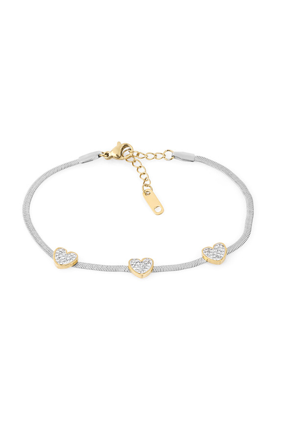 Дамска гривна Daniel Klein с нежен дизайн. Изработена от неръждаема стомана. Моделът е с декоративни елементи във формата на сърце с инкрустация.