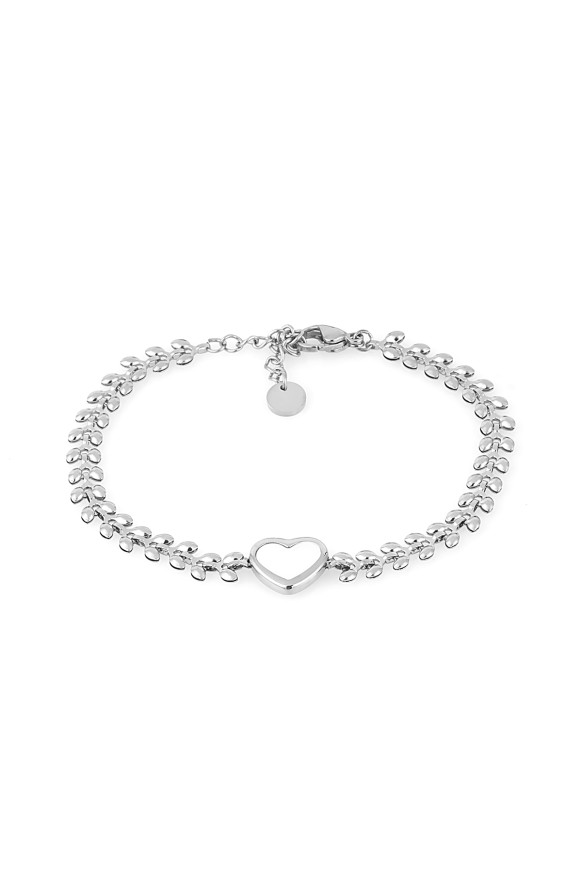 Нежна дамска гривна Daniel Klein от неръждаема стомана в сребрист цвят. Моделът е с декоративен елемент под формата на сърце със седеф.