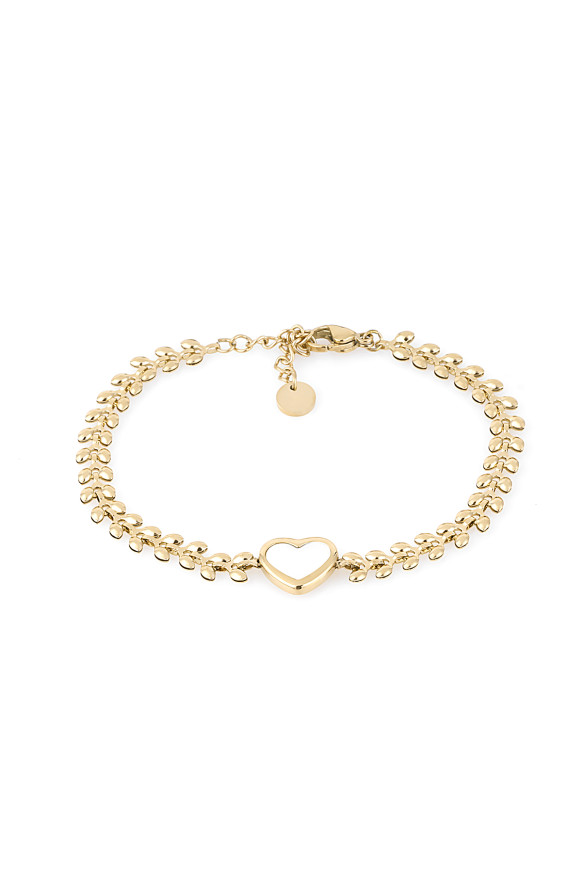 Нежна дамска гривна Daniel Klein от неръждаема стомана в цвят злато. Моделът е с декоративен елемент под формата на сърце със седеф.