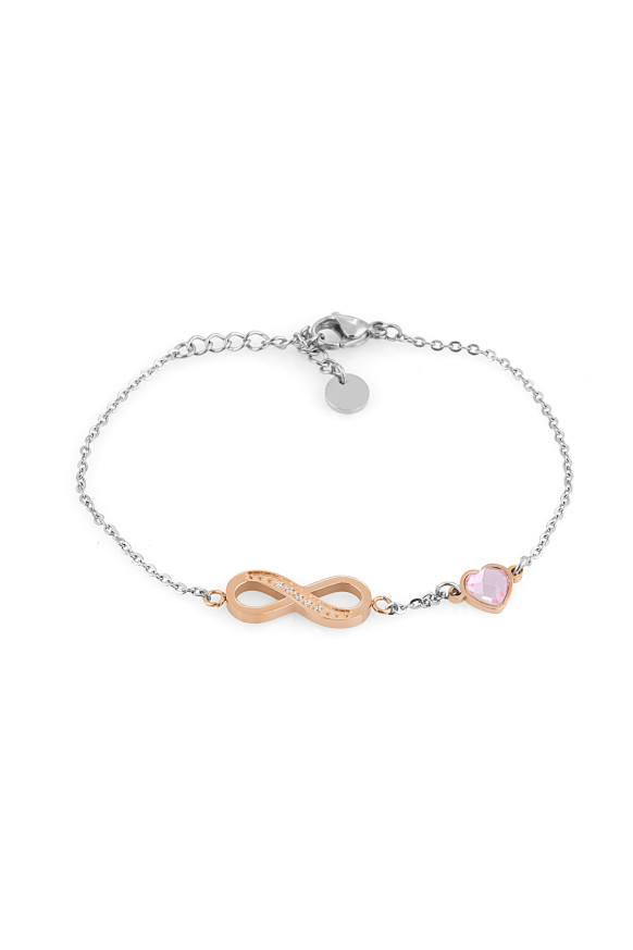 Дамска гривна Daniel Klein от неръждаема стомана. Нежни елементи безкрайност и сърце, допълнени от бляскави кристали.