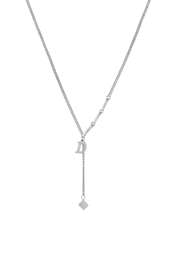 Дамско колие Daniel Klein с изчистен дизайн. Моделът е с декоративен елемент буквата "D" и кубче. Изработено е от неръждаема стомана.