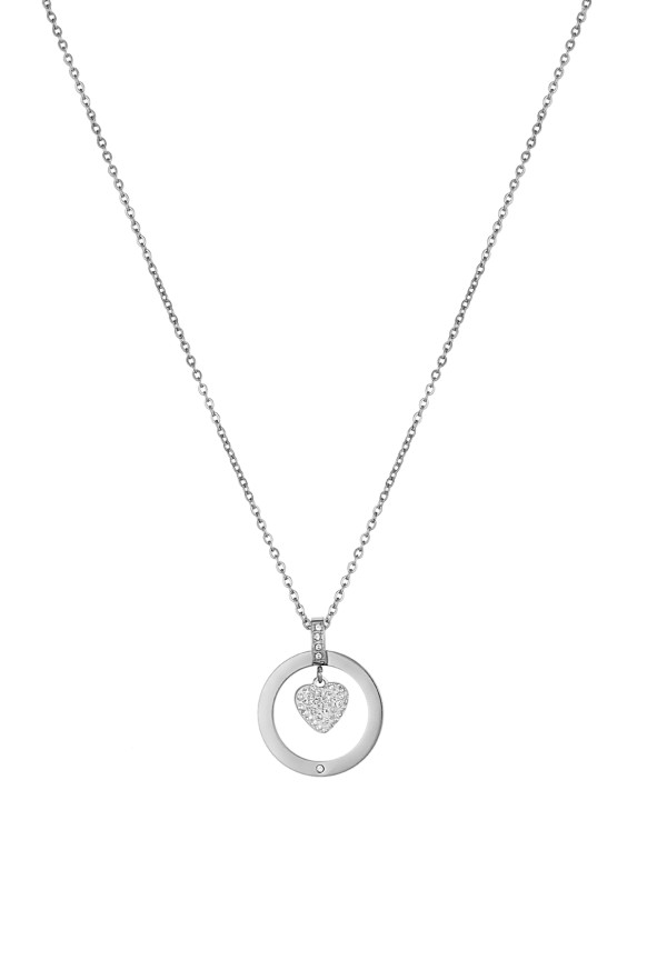 Нежно дамско колие Daniel Klein с красив дизайн. Изработено от неръждаема стомана. Моделът е с висулка с декоративен елемент във формата на сърце с инкрустирани кристали.