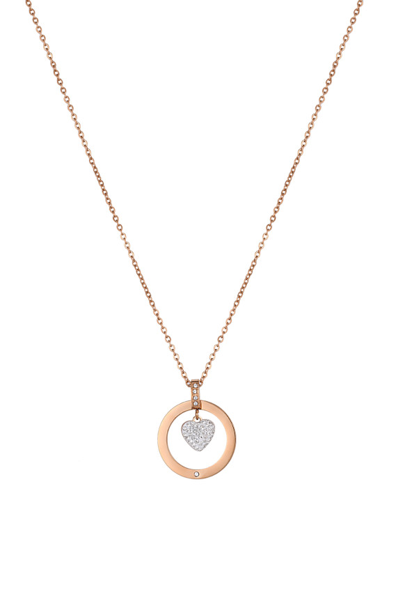 Нежно дамско колие Daniel Klein с красив дизайн. Изработено от неръждаема стомана. Моделът е с висулка с декоративен елемент във формата на сърце с инкрустирани кристали.