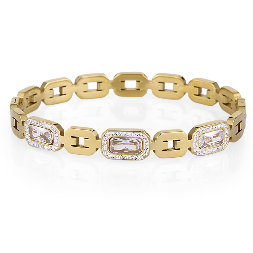 Дамска гривна Daniel Klein, изработена от неръждаема стомана с модерен и интересен дизайн. Моделът е с декорация от нежни кристали. Гривната е размер L.