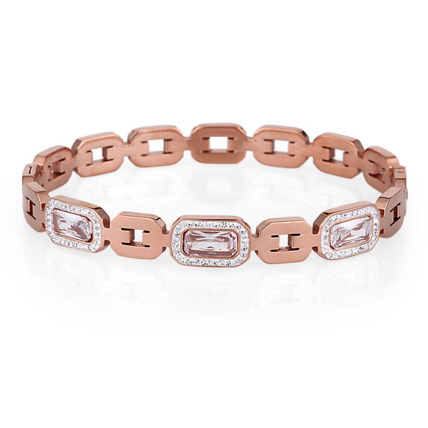 Дамска гривна Daniel Klein, изработена от неръждаема стомана с модерен и интересен дизайн. Моделът е с декорация от нежни кристали. Гривната е размер M.