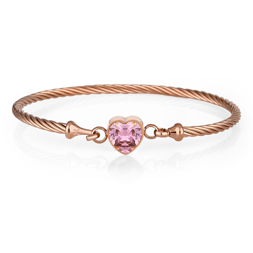 Нежен модел дамска гривна Daniel Klein с декоративен елемен сърце с камък в розов цвят. Изработена от неръждаема стомана. Гривната е размер L.
