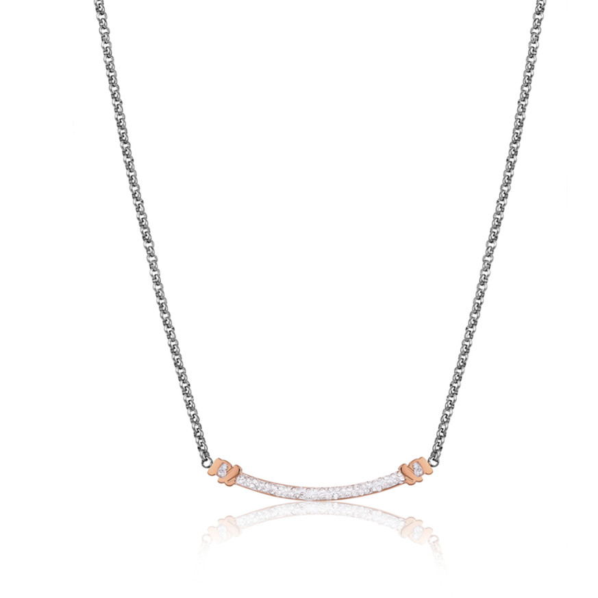 Дамско колие Daniel Klein от неръждаема стомана с модерен и интересен дизайн. Моделът е с декоративен елемент с нежни кристали.