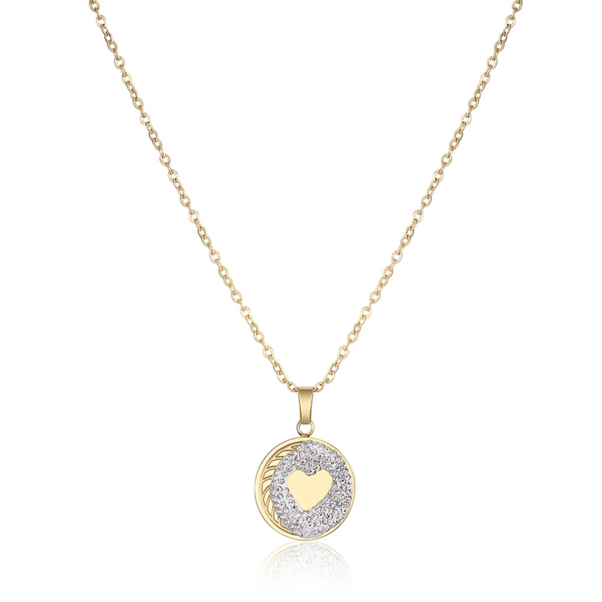 Дамско колие с висулка сърце с нежни кристали. Моделът е изработен от неръждаема стомана.