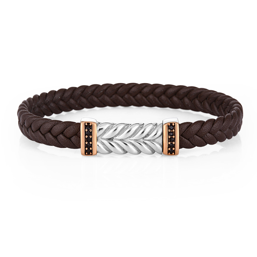 Мъжка гривна Daniel Klein от естествена кожа с декоративен елемент от неръждаема стомана и декорация от камъни. Гривната е размер L.