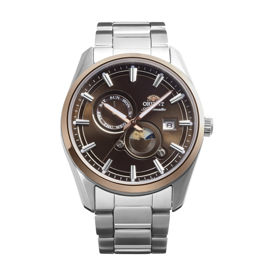 Часовник ORIENT RA-AK0313Y – Мъжки автоматичен модел с Sun & Moon и кафяв циферблат