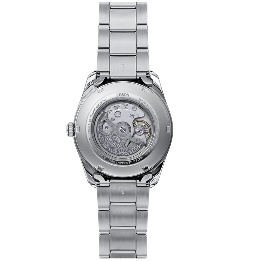 Часовник ORIENT RA-AK0313Y съчетава класическа японска естетика с модерна спортно-елегантна визия. Кафявият циферблат с индикатор Sun & Moon, дата и ден от седмицата придава дълбочина и характер. Луминесцентните стрелки осигуряват отлична четимост, а корпусът и верижката от благородна стомана гарантират издръжливост. Сапфир-кристалното стъкло предпазва от надраскване, а автоматичният механизъм Cal.F6B24 с 40-часов резерв на мощност подчертава прецизната японска изработка.
