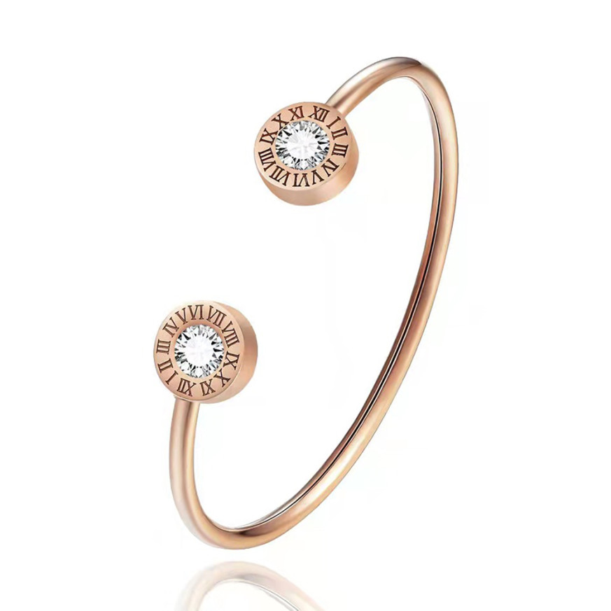 Твърд модел дамска гривна Lee Cooper. Изработена от неръждаема стомана, със завършек от декоративен елемент с инкрустиран кристал. Дължина на гривната 75 мм.
