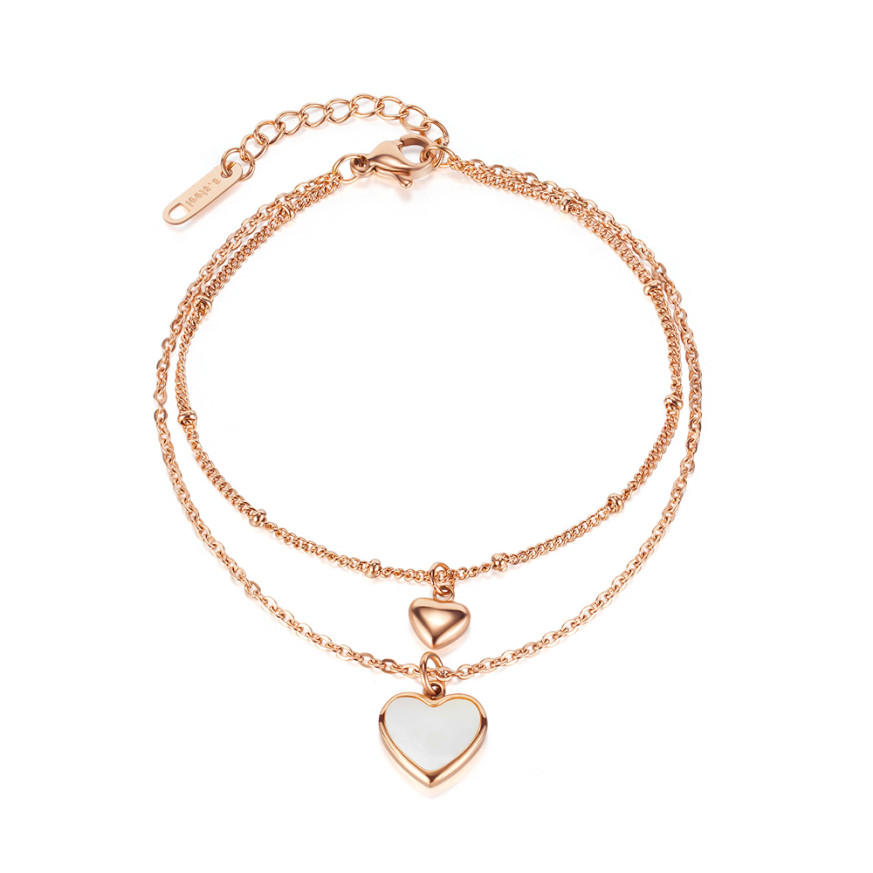 Нежен модел дамска гривна със сърца, изработена от неръждаема стомана. Дължина на гривната 165 мм + 45 мм.
