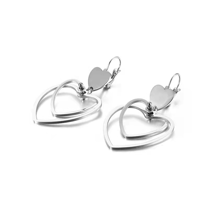 Красиви дамски обеци във формата на сърце, изработени от неръждаема стомана.