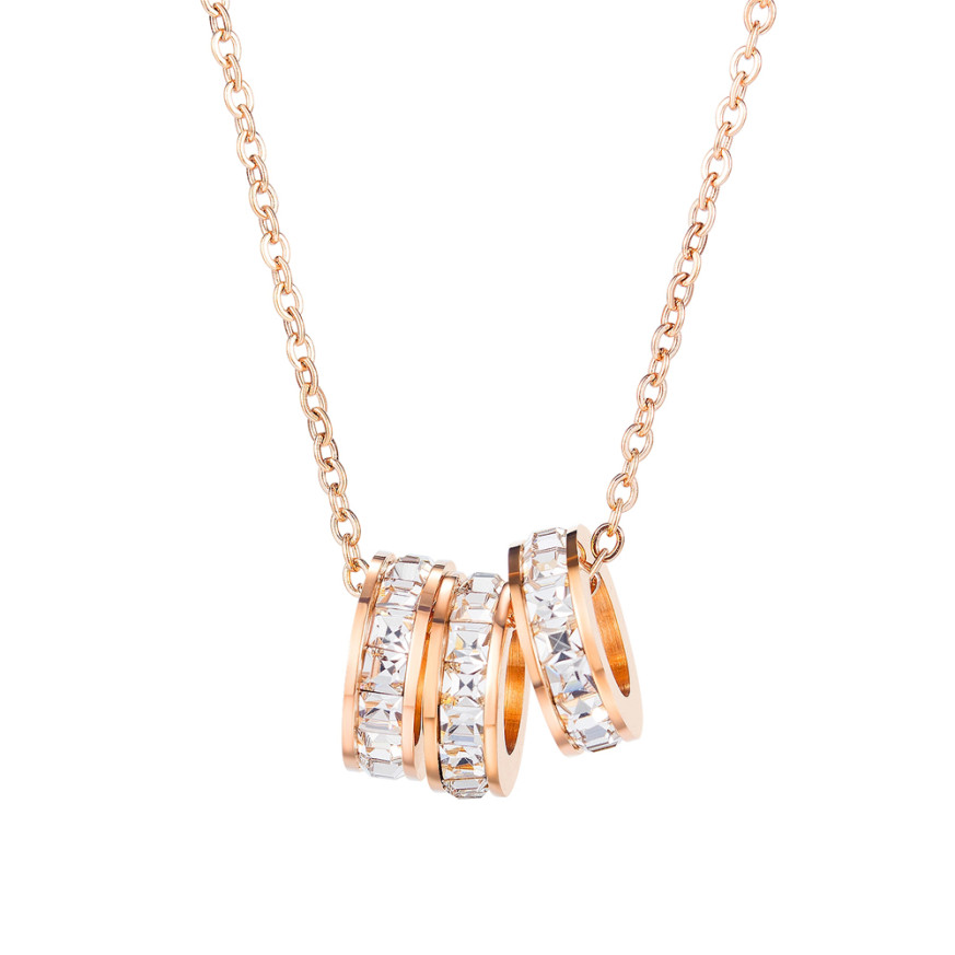 Нежно дамско колие Lee Cooper, изработено от неръждаема стомана с три висящи елемента и декорация от инкристирани кристали.
