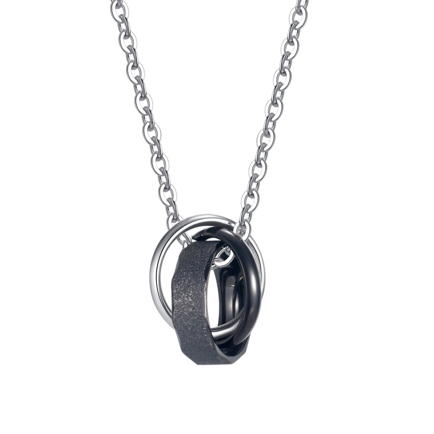 Стилно мъжко колие, изработено от неръждаема стомана с декорация от три висящи ринга.