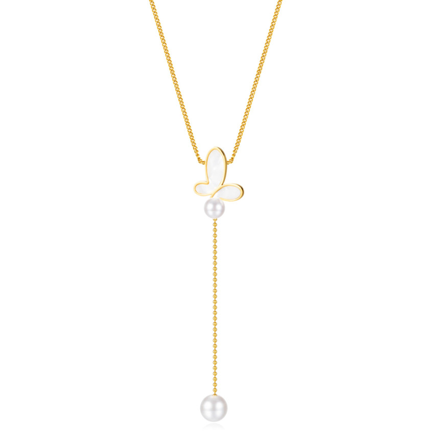 Нежно дамско колие Lee Cooper с декорация от седеф и мъниста наподобяващи перла. Изработено от неръждаема стомана. Дължина на колието 400 мм + 60 мм.