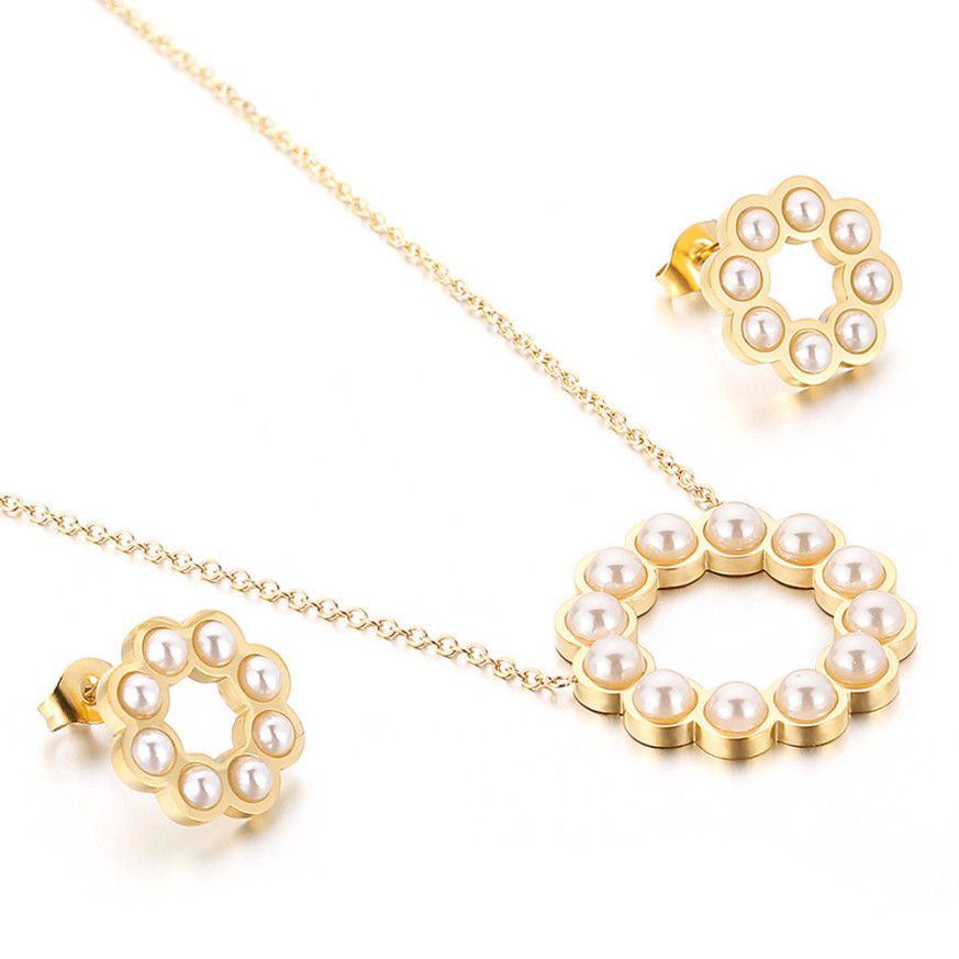 Впечатляващ дамски комплект колие и обеци Lee Cooper с нежен дизайн. Моделът е изработен от неръждаема стомана и е с  декорация от мъниста, наподобяващи перла.