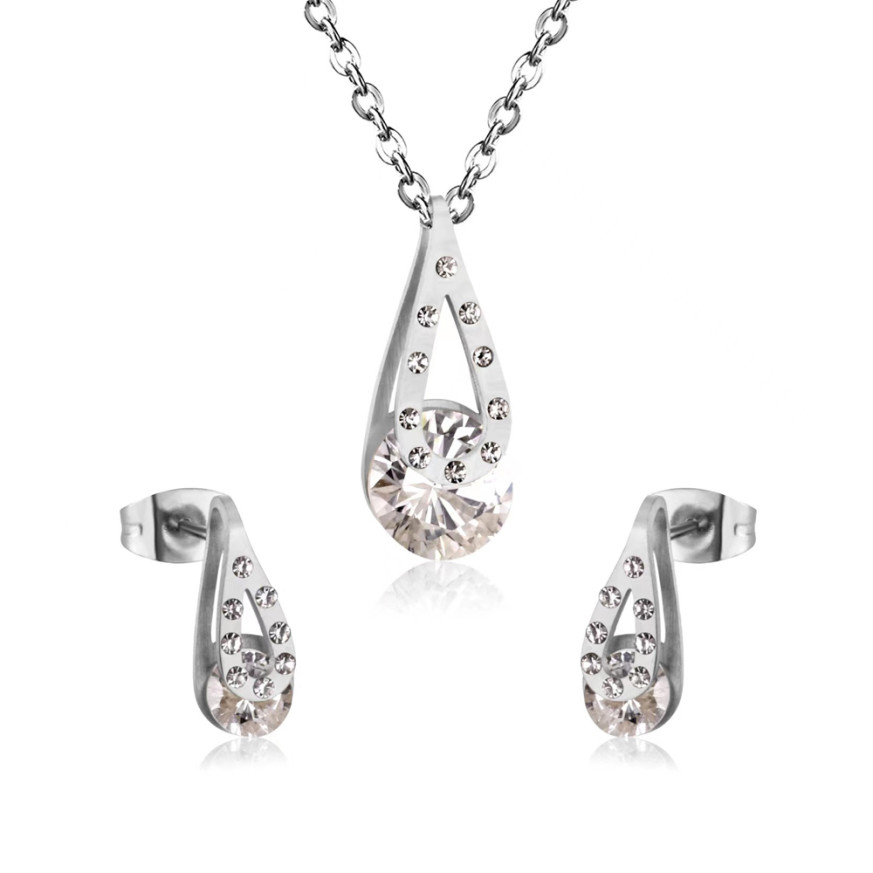Красив дамски комплект Lee Cooper със стилен дизайн. Комплектът включва колие и обеци, изработени от неръждаема стомана с декорация от нежни кристали.