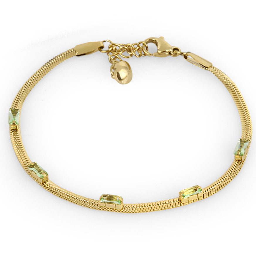 Нежен модел дамска гривна Daniel Klein с декорация от зелени кристали. Изработена от неръждаема стомана.
