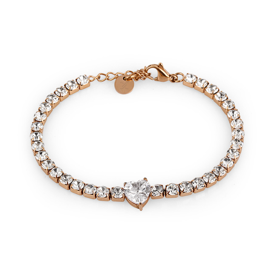 Дамска гривна Daniel Klein с инкрустирани бляскави кристали и декоративен елемент сърце. Изработена от неръждаема стомана.