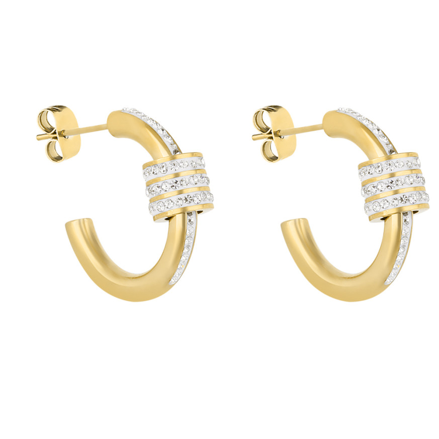 Дамски обеци на винт с декорация от нежни кристали. Моделът е изработен от неръждаема стомана.